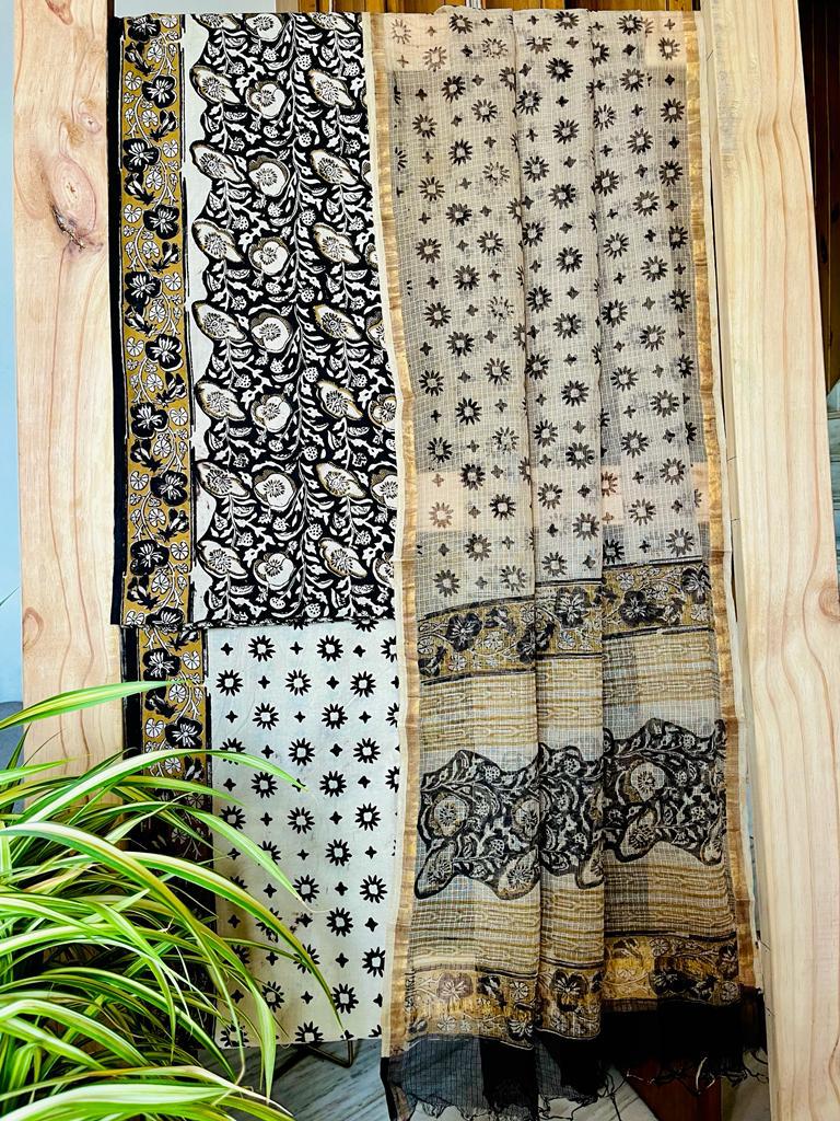 handblock printed pure cotton suits with kota doriya dupatta