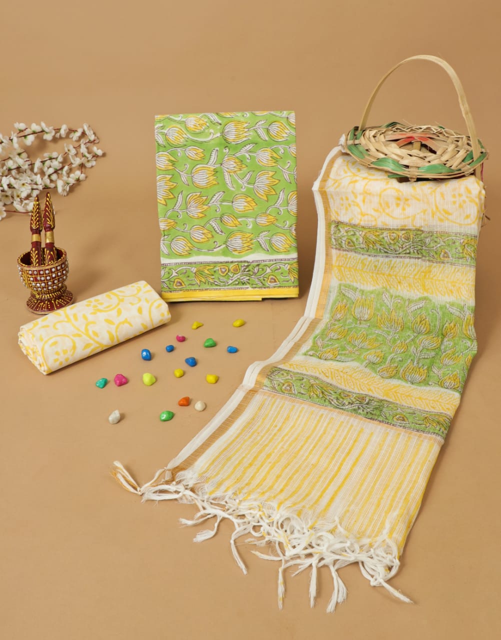handblock printed pure cotton suits with kota doriya dupatta