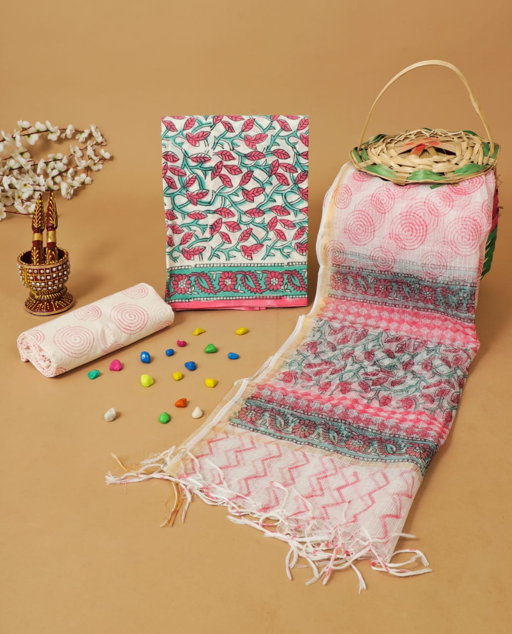 handblock printed pure cotton suits with kota doriya dupatta