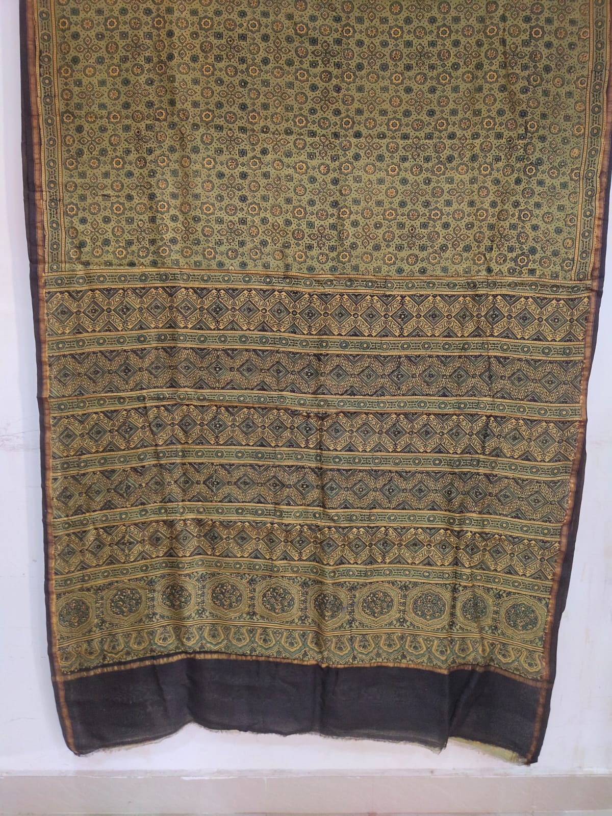 Ajrakh Block Print Pure Chanderi Silk Saree with blouse piece