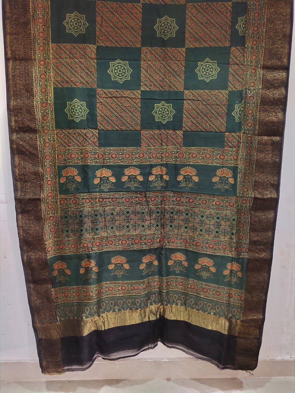 Ajrakh Block Print Pure Chanderi Silk Saree with blouse piece