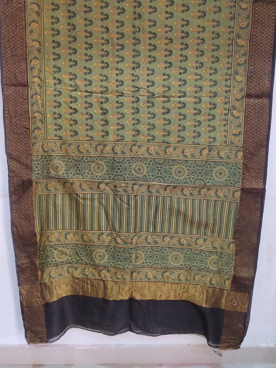 Ajrakh Block Print Pure Chanderi Silk Saree with blouse piece