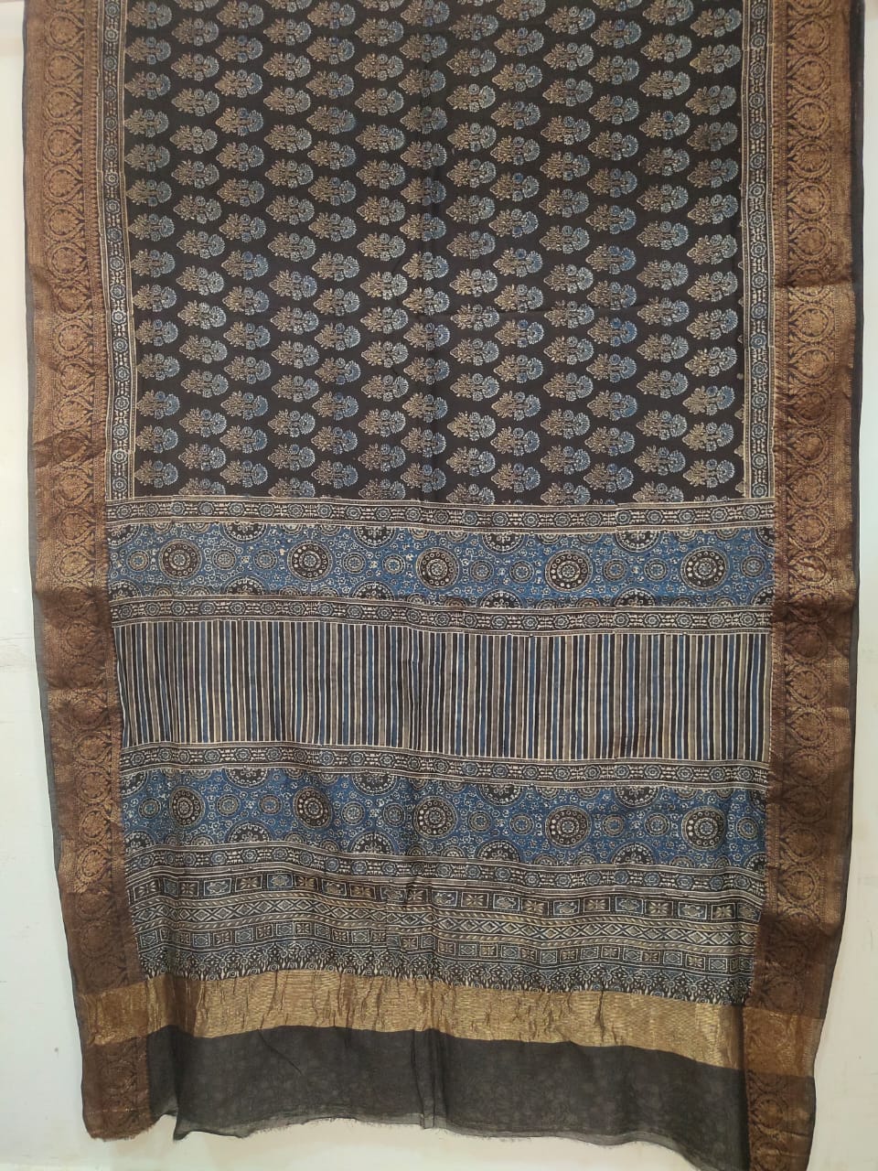 Ajrakh Block Print Pure Chanderi Silk Saree with blouse piece