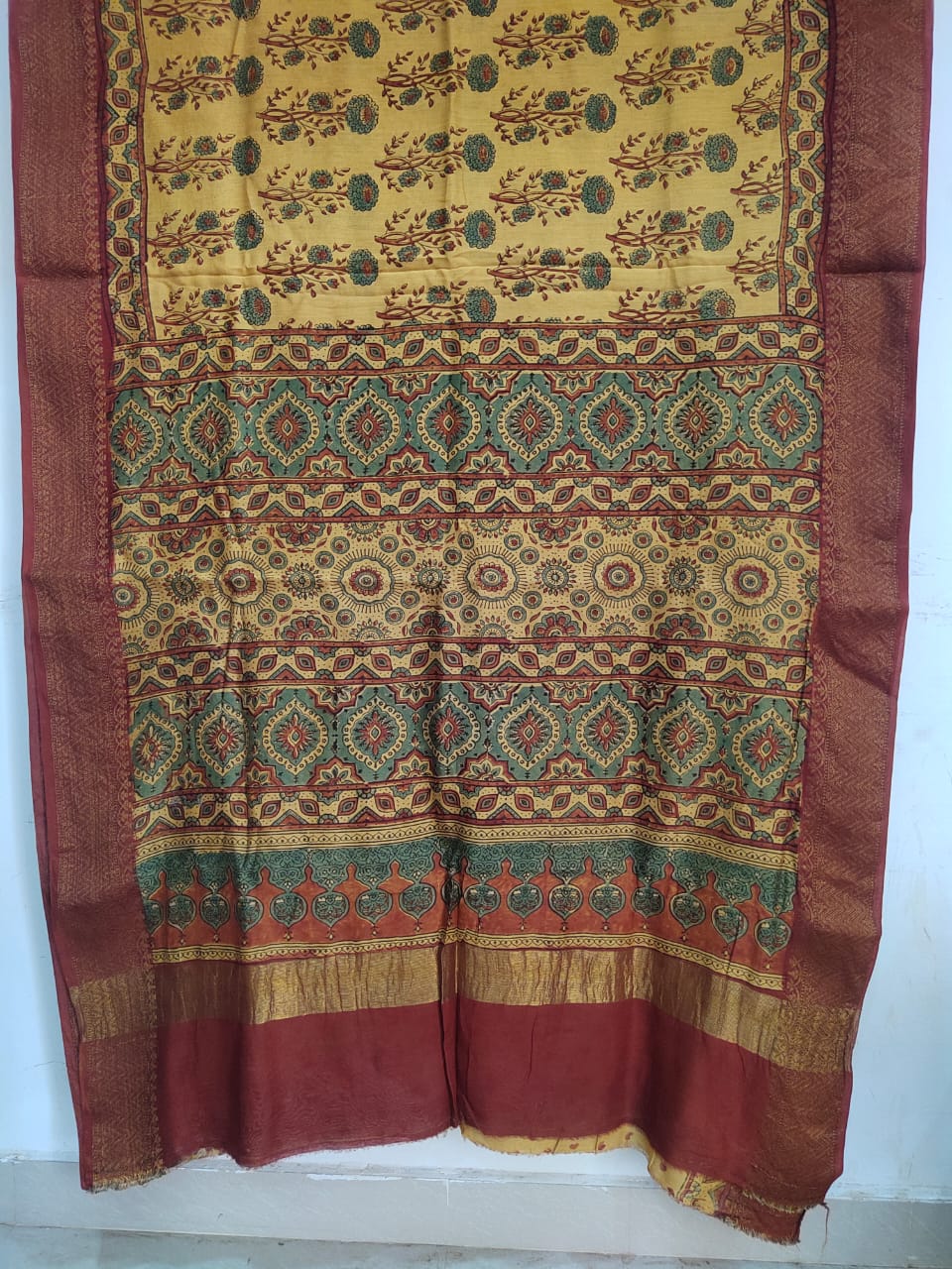 Ajrakh Block Print Pure Chanderi Silk Saree with blouse piece