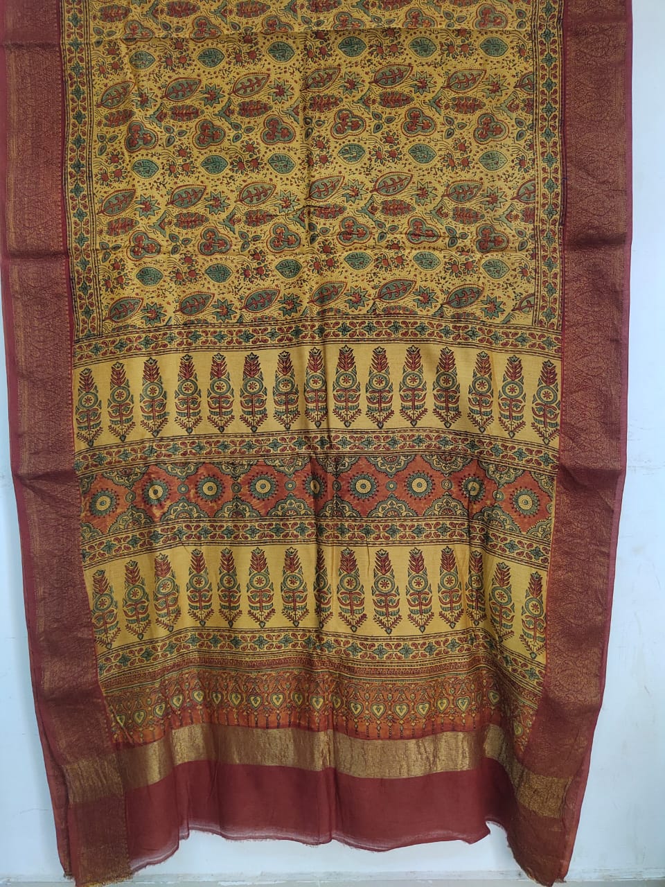 Ajrakh Block Print Pure Chanderi Silk Saree with blouse piece