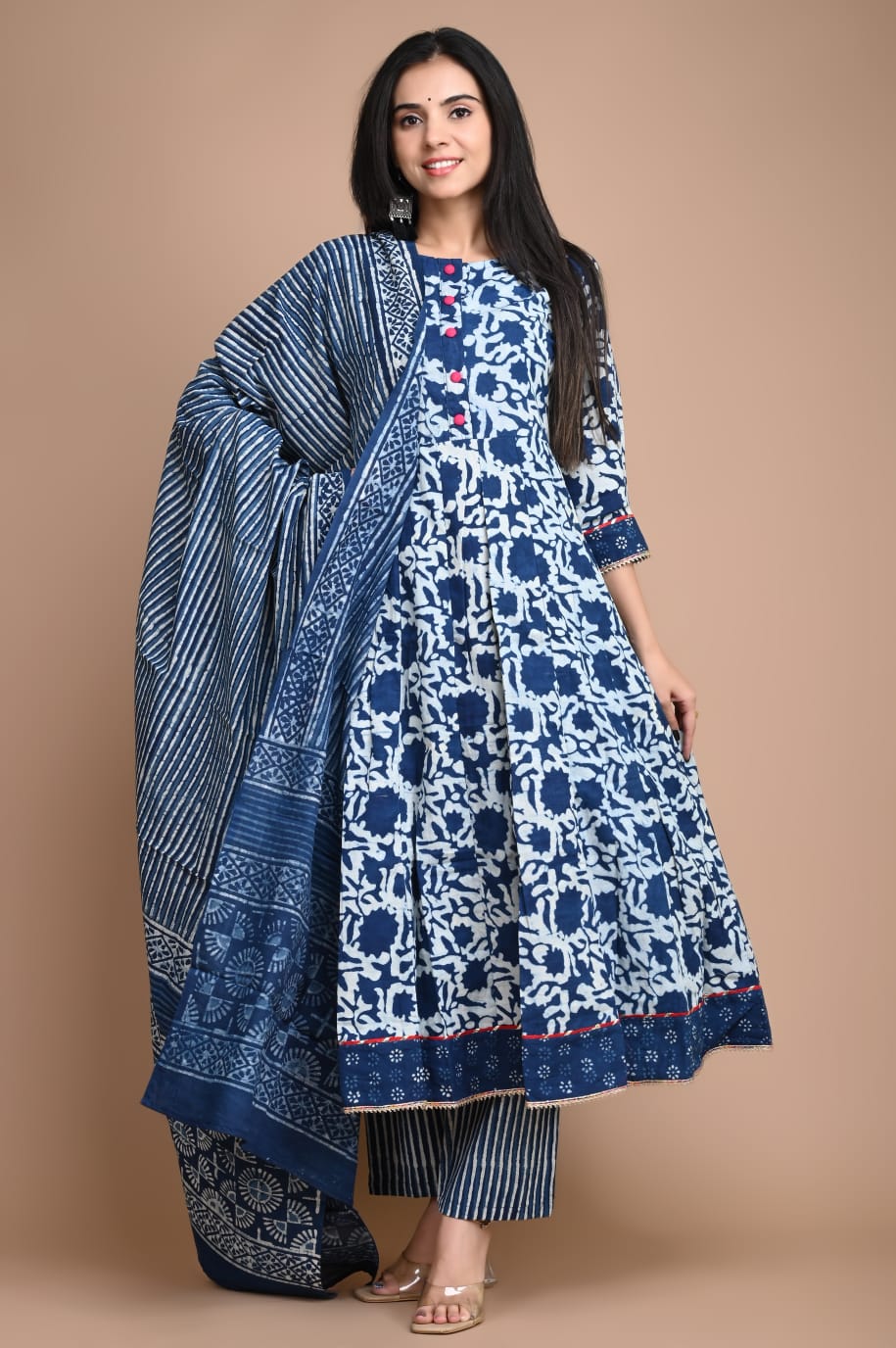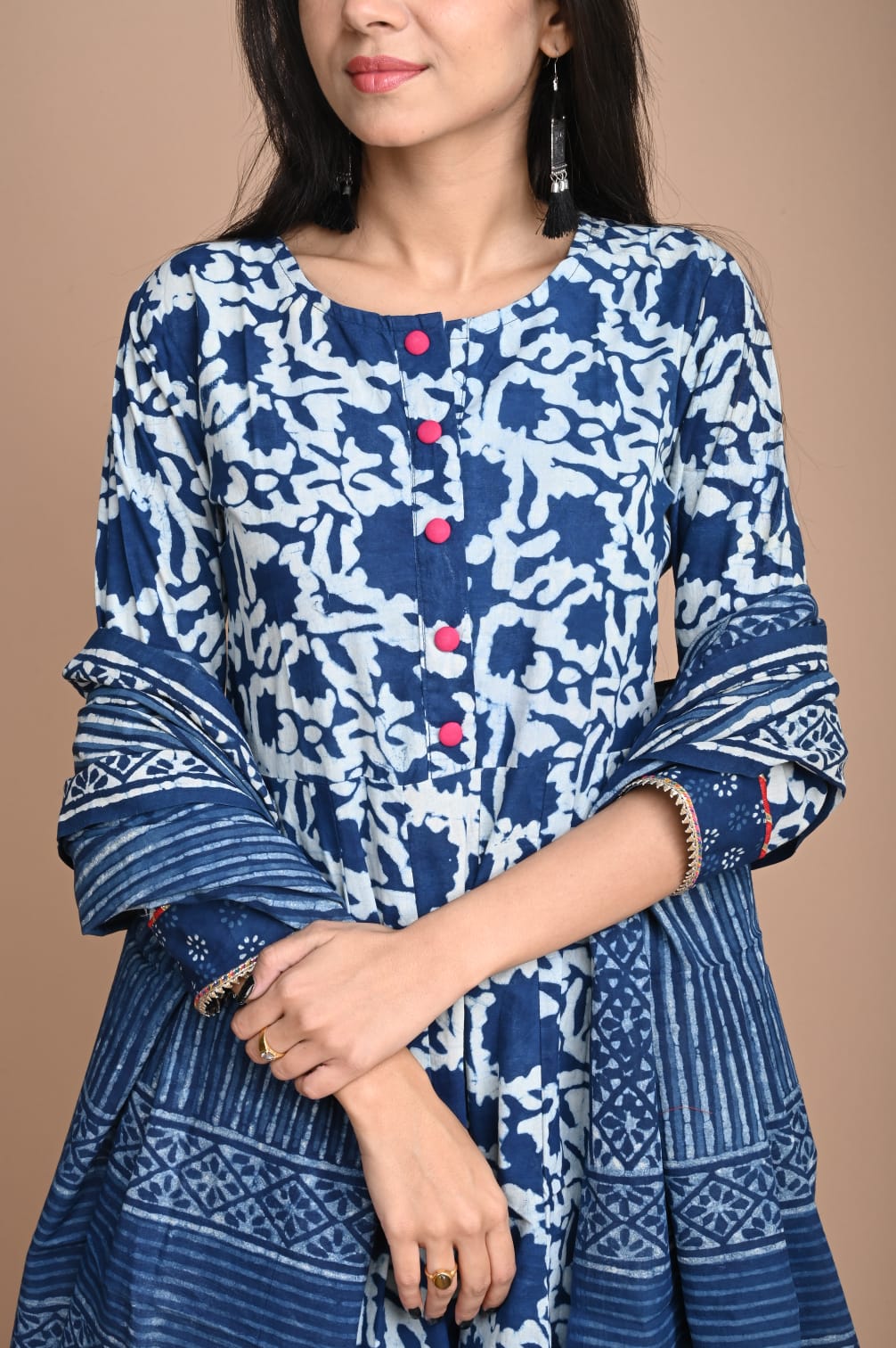 Anarkali Kurti Set in hand block prints ₹ 2709.00