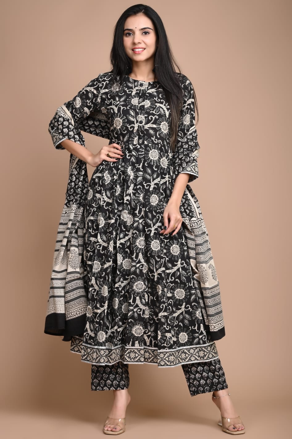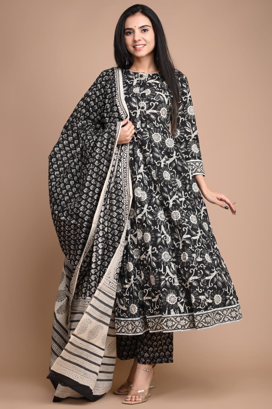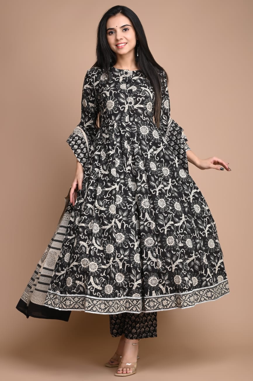 Anarkali Kurti Set in hand block prints ₹ 2623.00