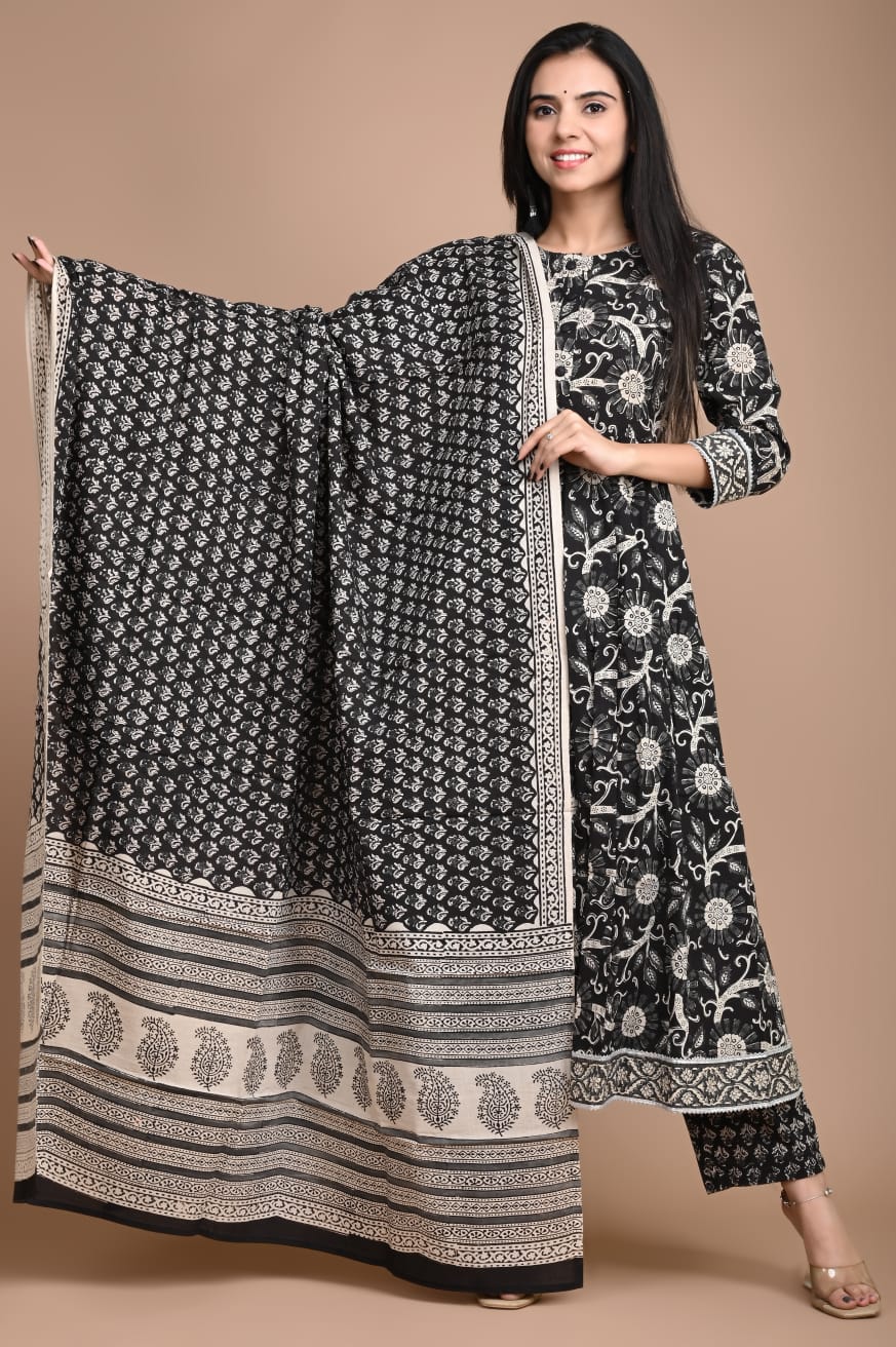 • Cotton Kurti with Cotton Plazo and Mulmul Dupatta