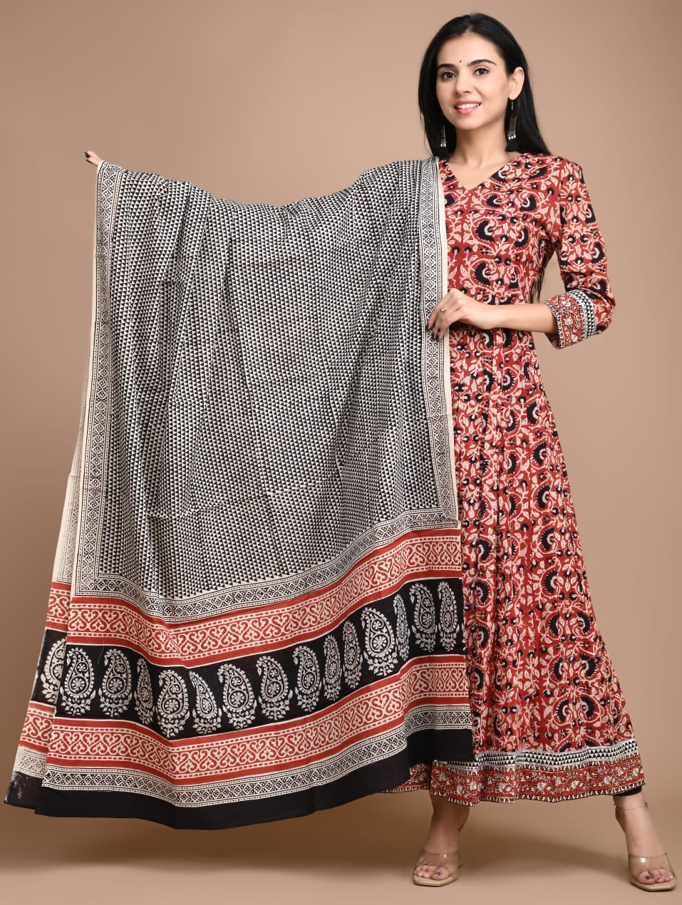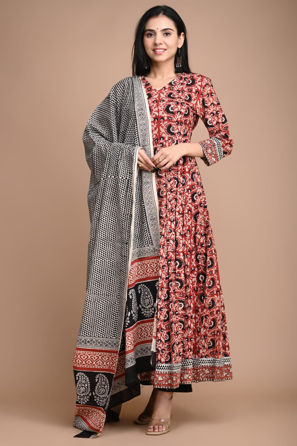 Stiched Anarkali Suits With Kota Doria Dupatta