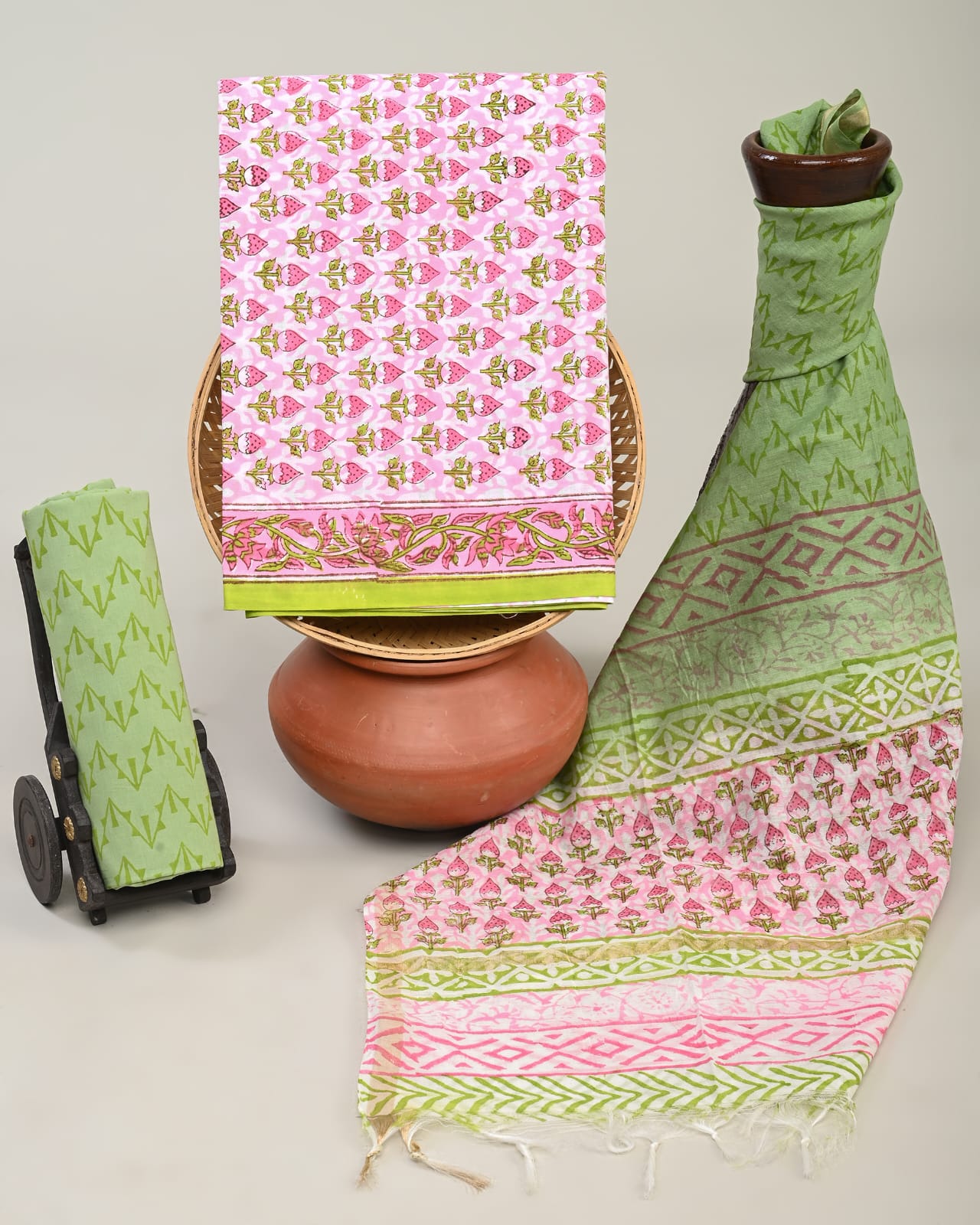 Jackyll Special handblock printed pure cotton suits with kota doriya dupatta.