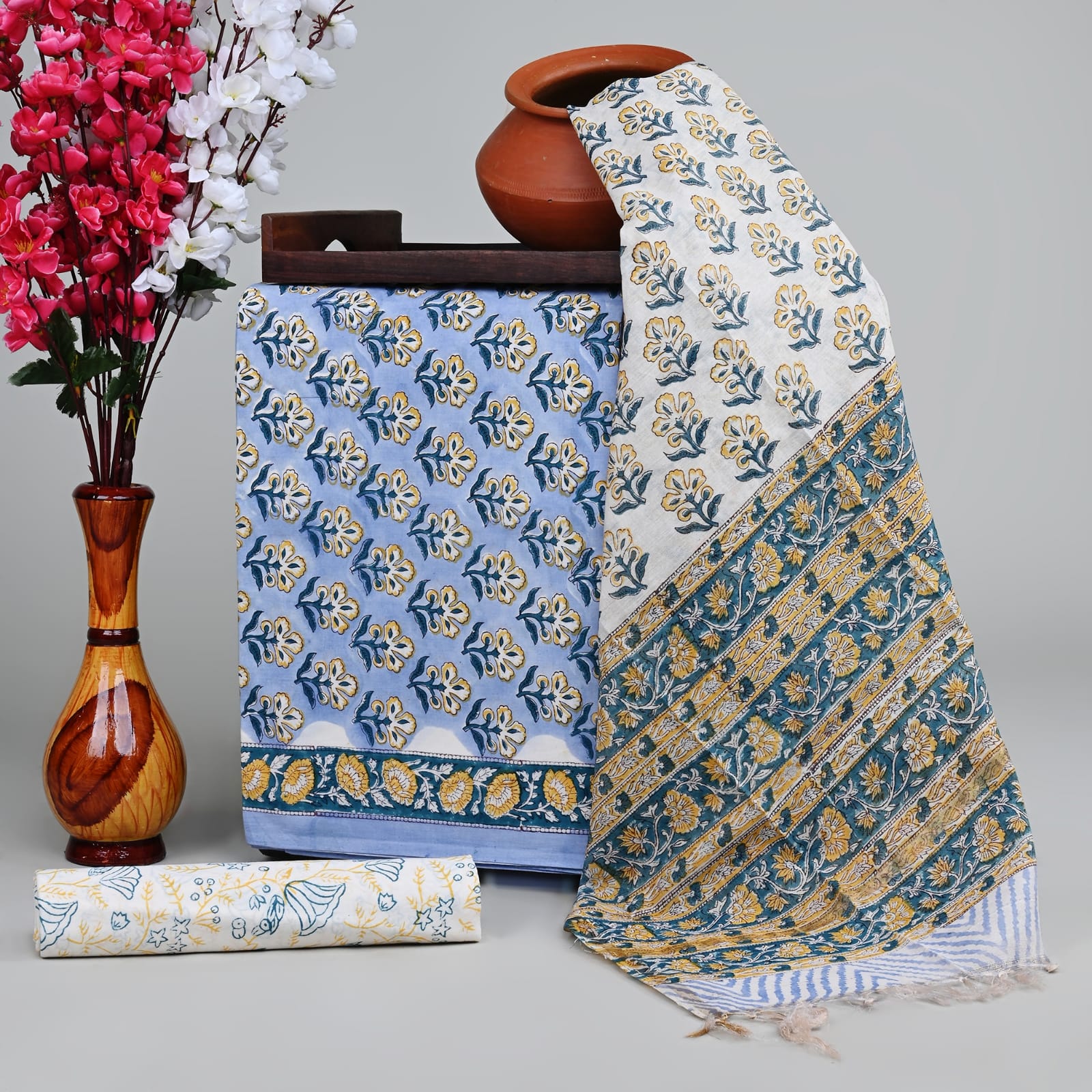 Be the first to review “Bagru block printed pure chanderi suit sets with cotton bottom .” Cancel reply