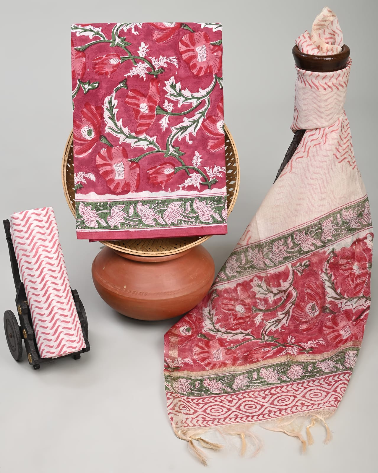 Bagru block printed pure chanderi suit sets with cotton bottom .