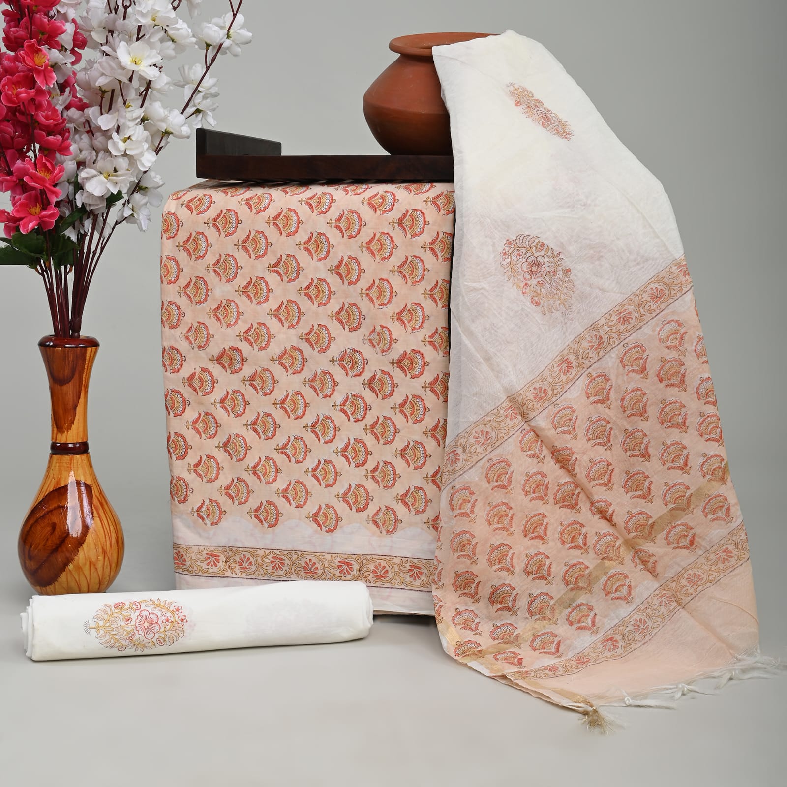 Bagru block printed pure chanderi suit sets with cotton bottom .