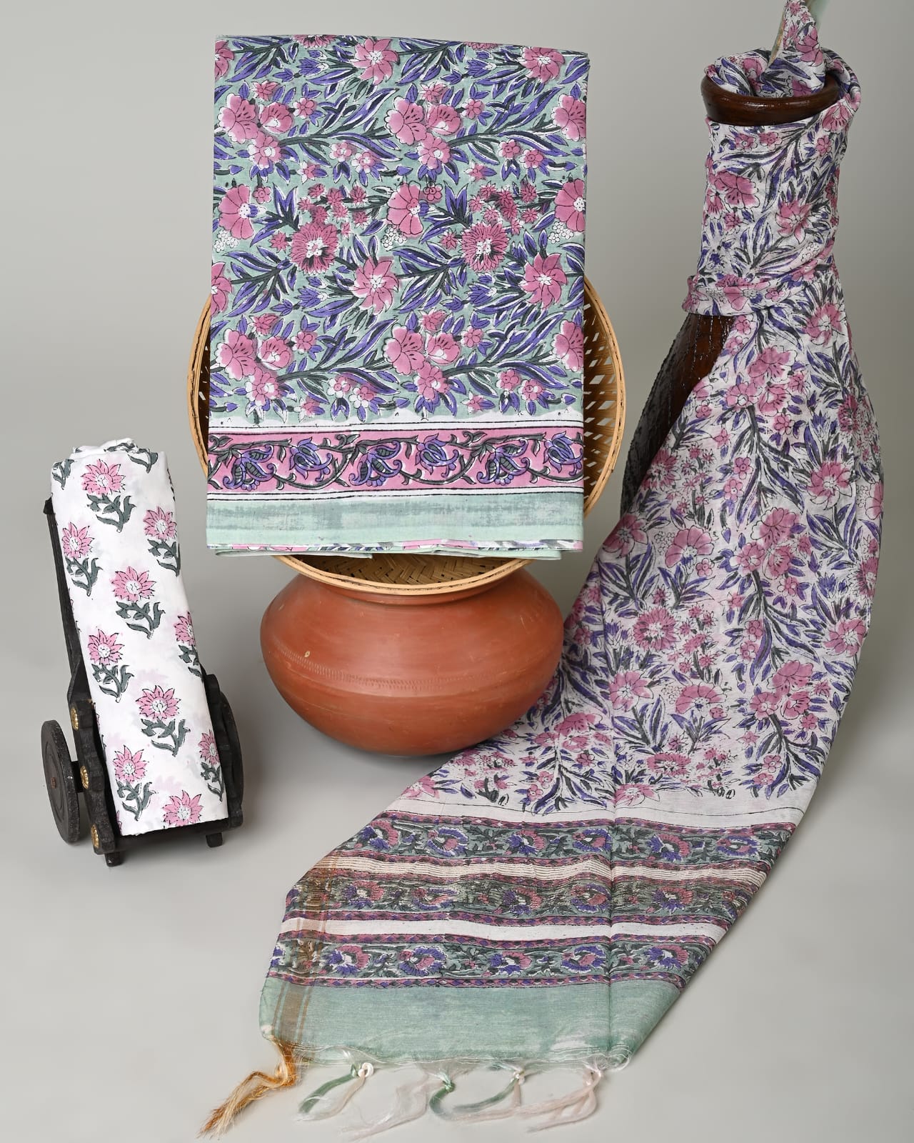 Jackyll Special handblock printed pure cotton suits with kota doriya dupatta.