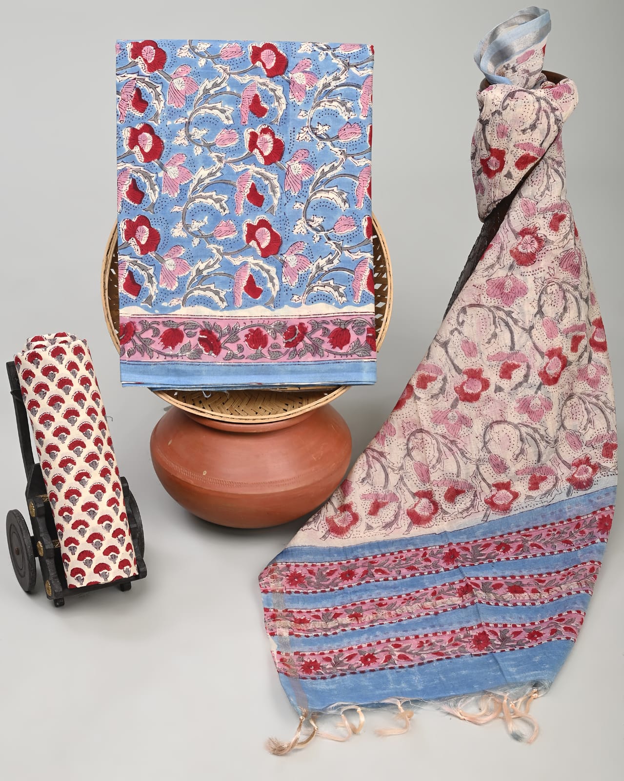 Bagru block printed pure chanderi suit sets with cotton bottom .