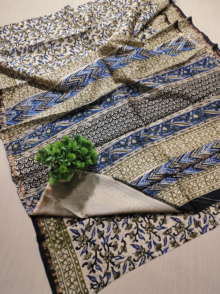 Beautiful hand block “designer border Kalamkari print? chanderi saree
