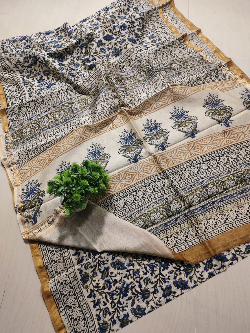 Beautiful hand block “designer border Kalamkari print? chanderi saree