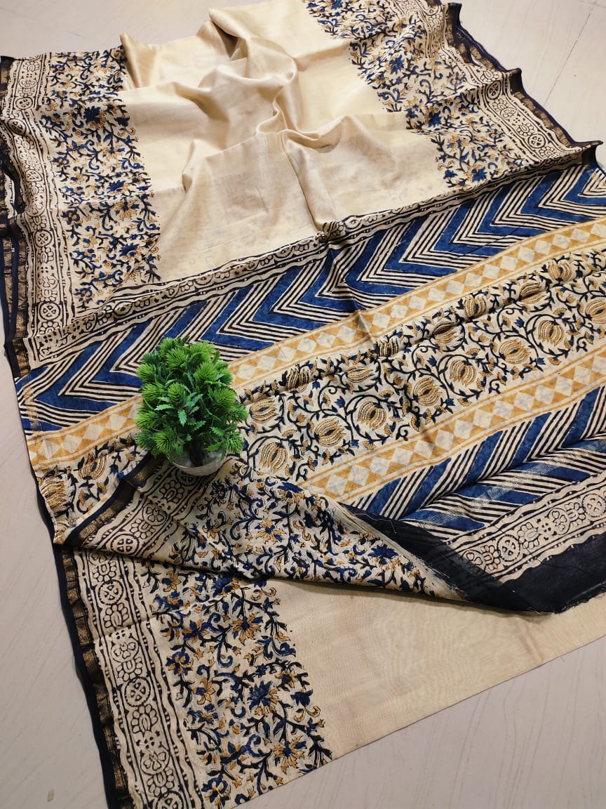 Beautiful hand block “designer border Kalamkari print? chanderi saree