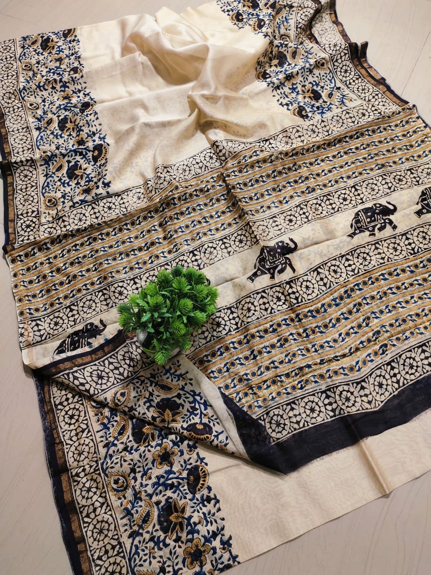 Beautiful hand block "designer border Kalamkari print? chanderi saree ₹ 4500.00 Original price was: ₹ 4500.00.₹ 3350.00Current price is: ₹ 3350.00.