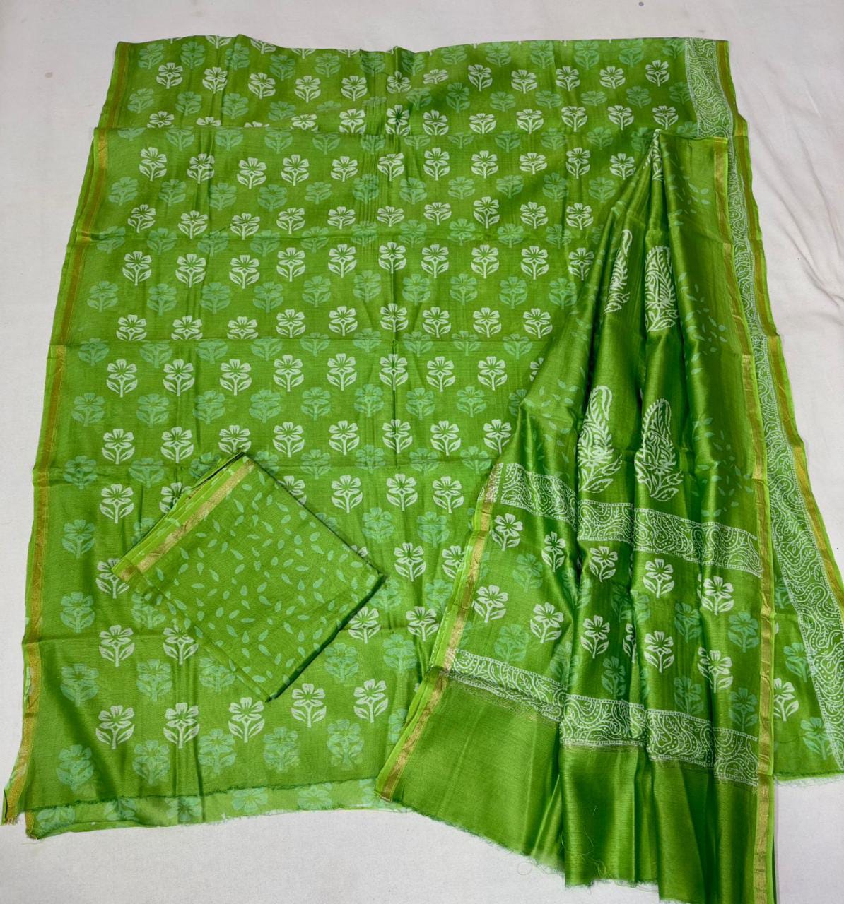 Beautiful hand block vegetable dye mulbury print chanderi complete dress material