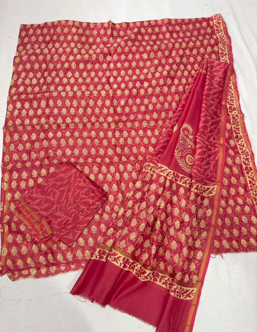 Beautiful hand block vegetable dye mulbury print chanderi complete dress material