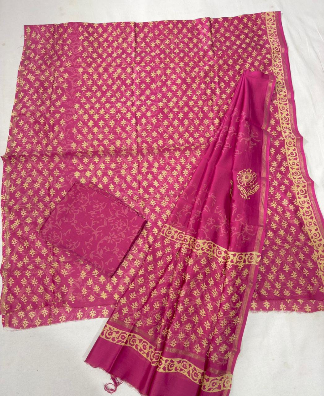• Hand block Maheshwari silk suits