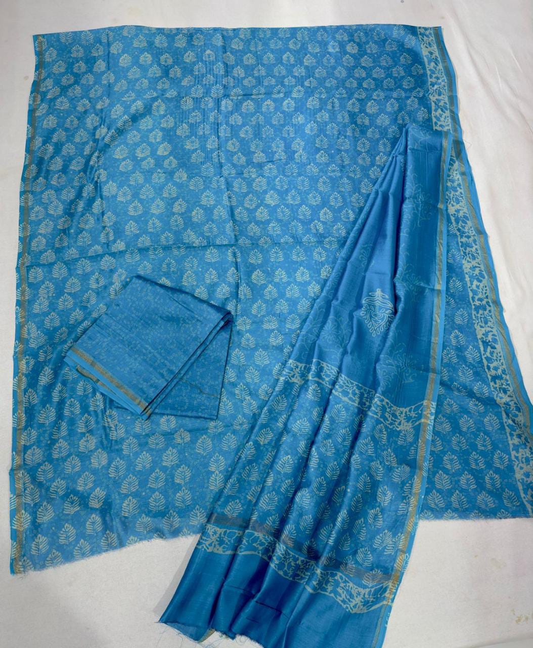 Pure Maheshwari Dress Material With Golden Zari Border