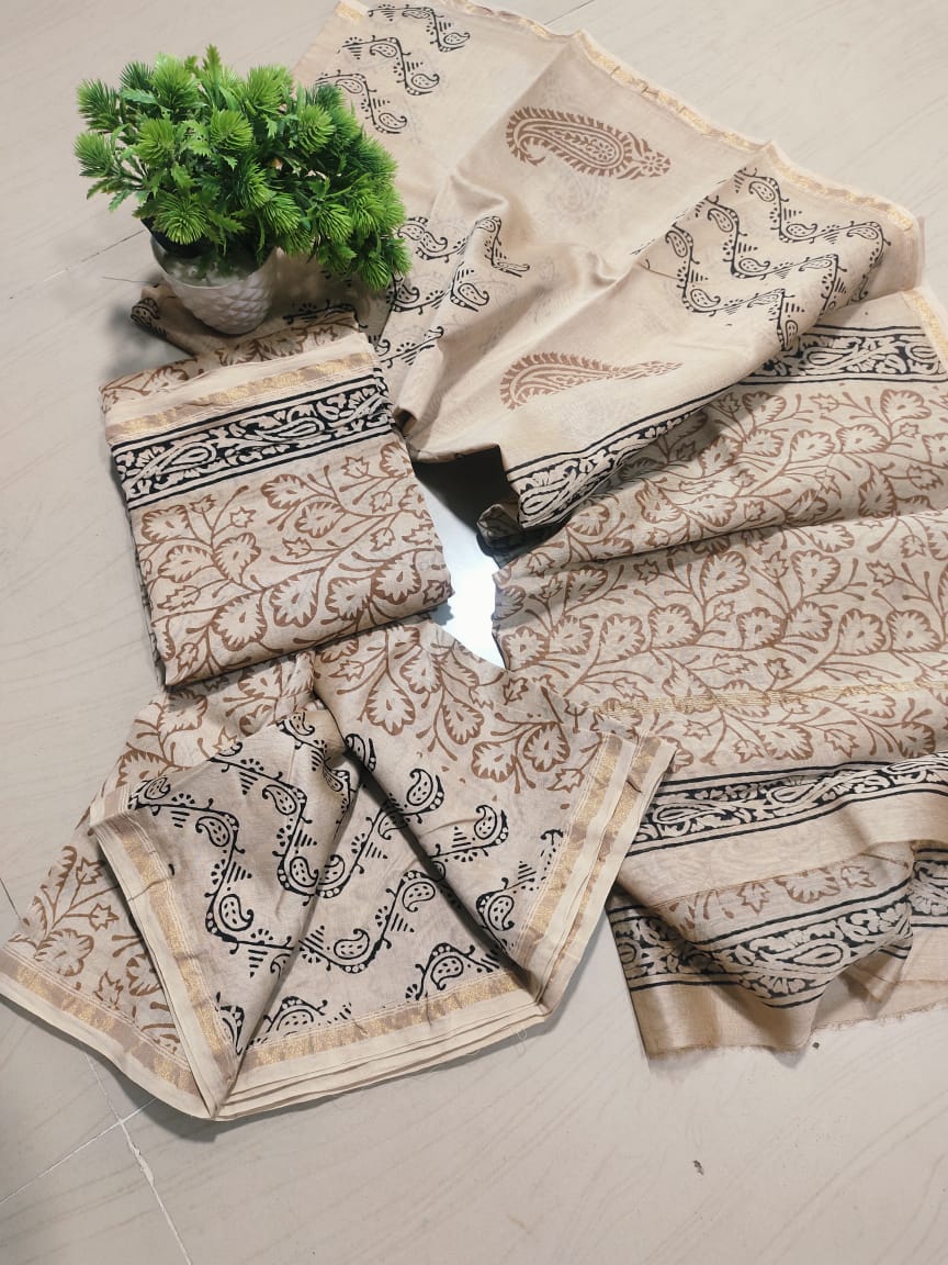 Beautiful handblock attractive fancy mulbary print chanderi complete dress material
