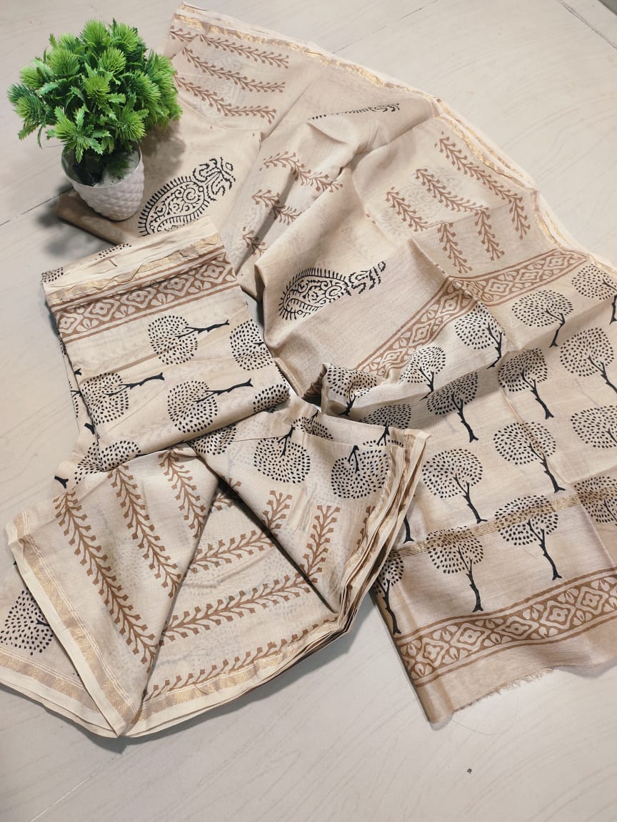 • Hand block Maheshwari silk suits