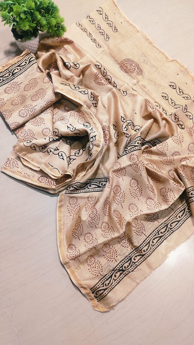 Beautiful handblock attractive fancy mulbary print chanderi complete? dress material