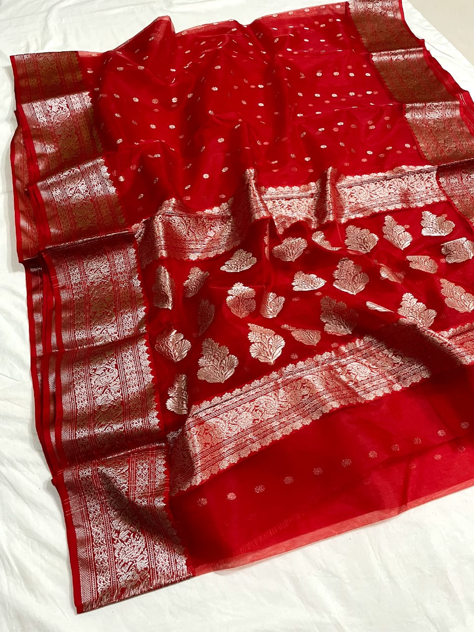 Allover silver zari ghana buti work With beautiful silver zari brood nakshi border & Silver zari fancy buta pallu