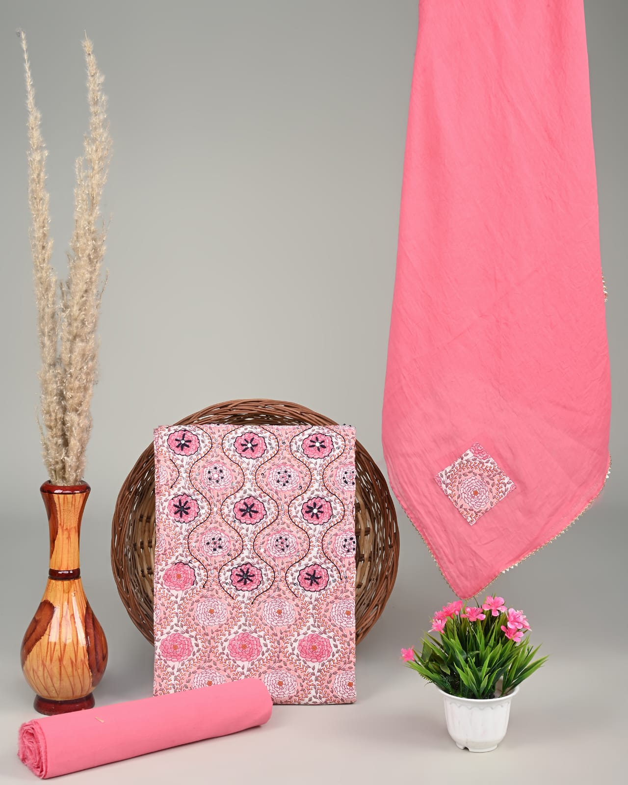 • Pure cotton suits with chiffon dupatta