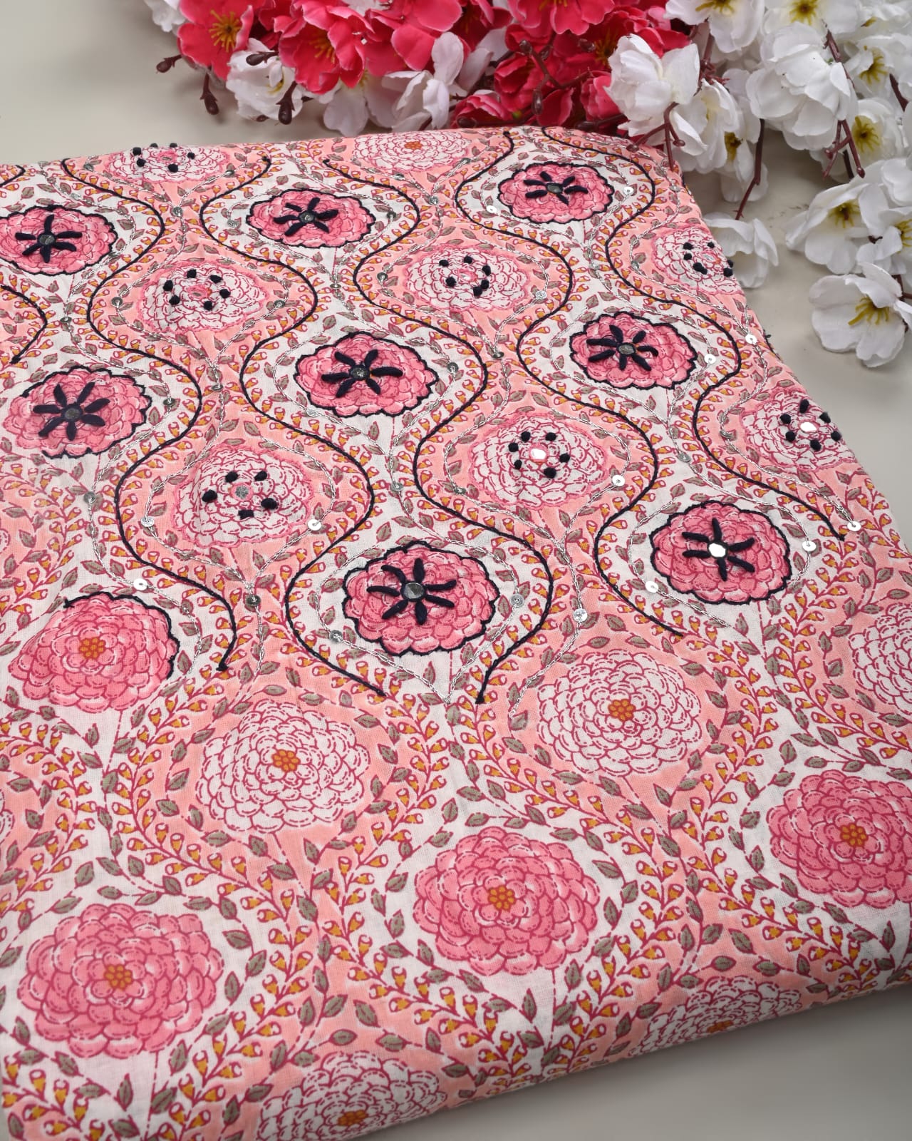 Beautiful Sanganeri print cotton hand work suit material with cotton dupatta