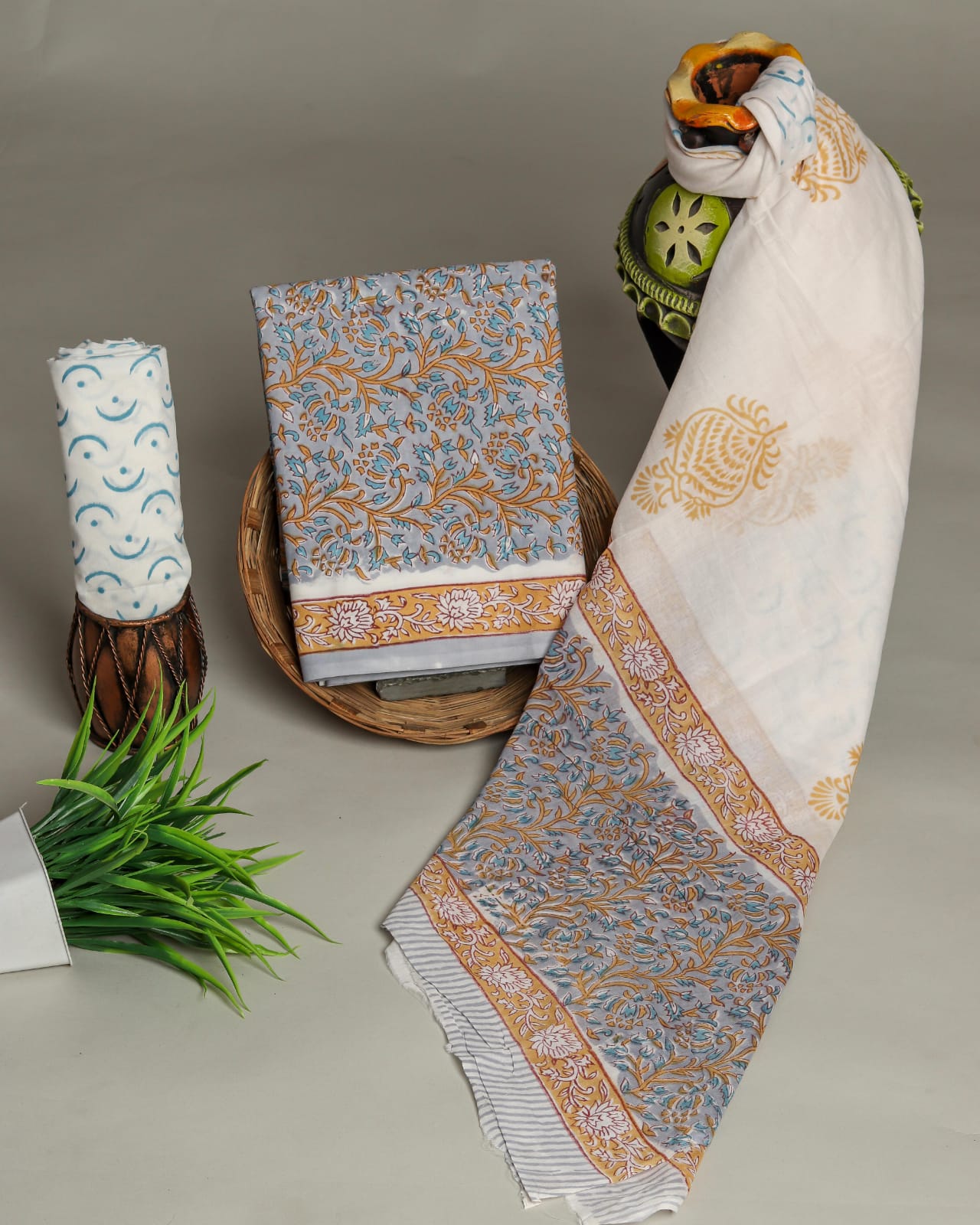 Block Printed Pure Cotton Suit Sets With Cotton Mulmul Dupatta.