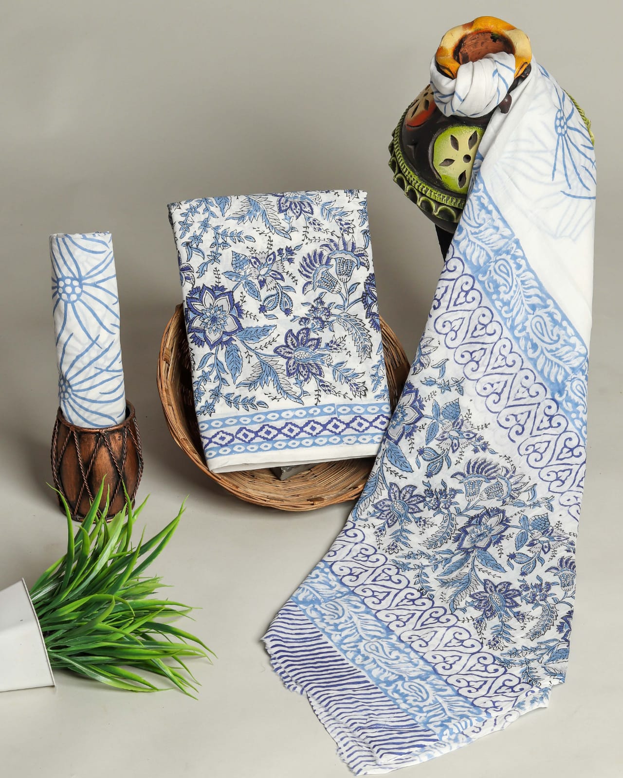 Block Printed Pure Cotton Suit Sets With Cotton Mulmul Dupatta.