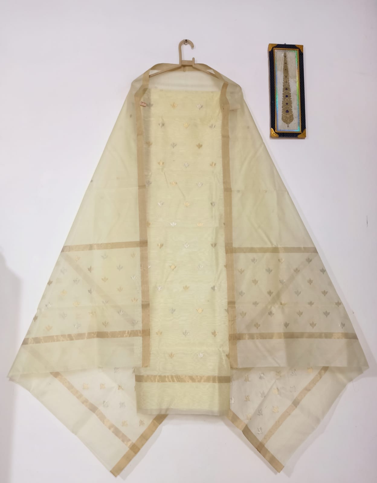 Allover Golden Zari Beautiful Buties with Golden Zari Solid Border