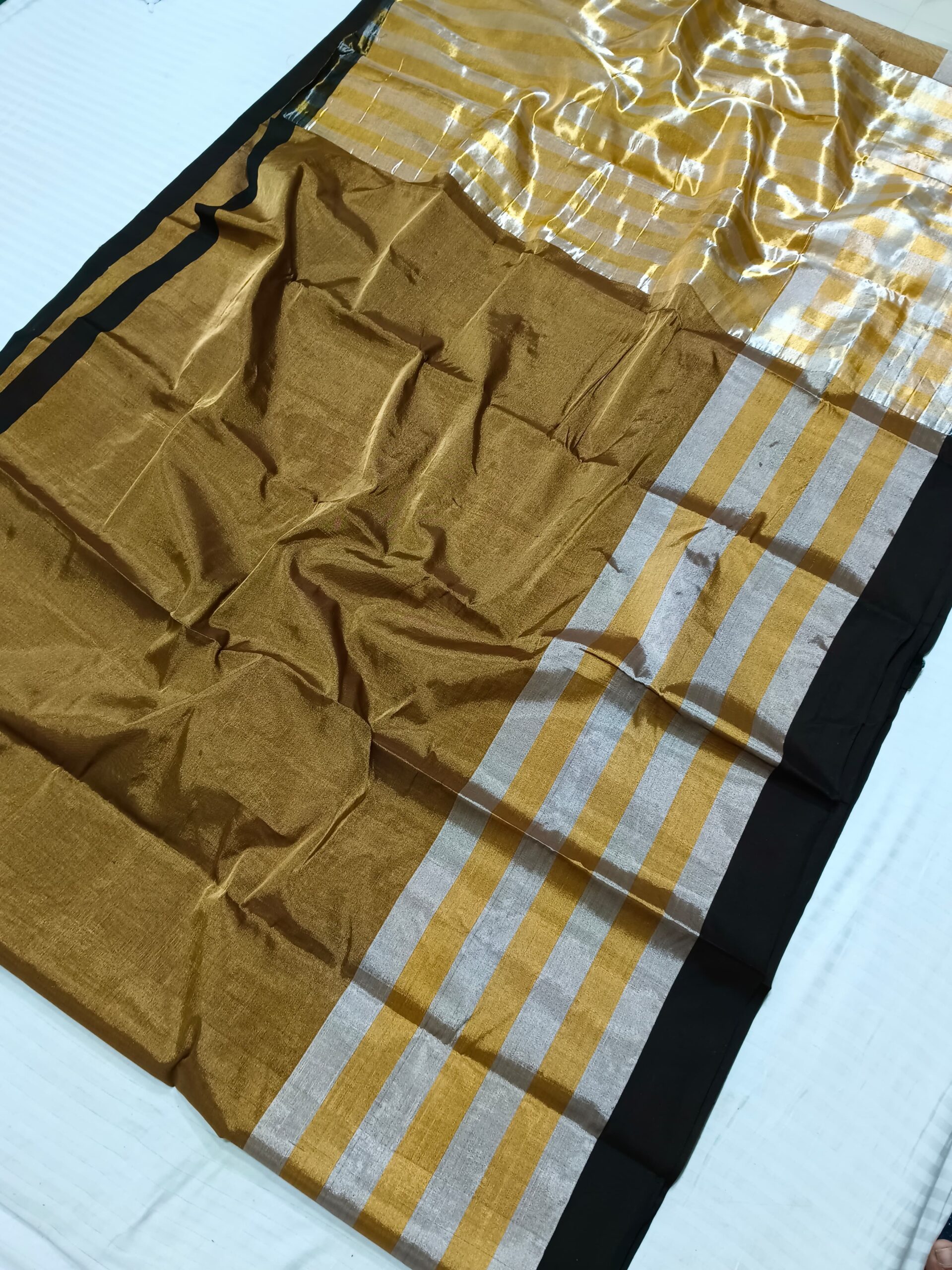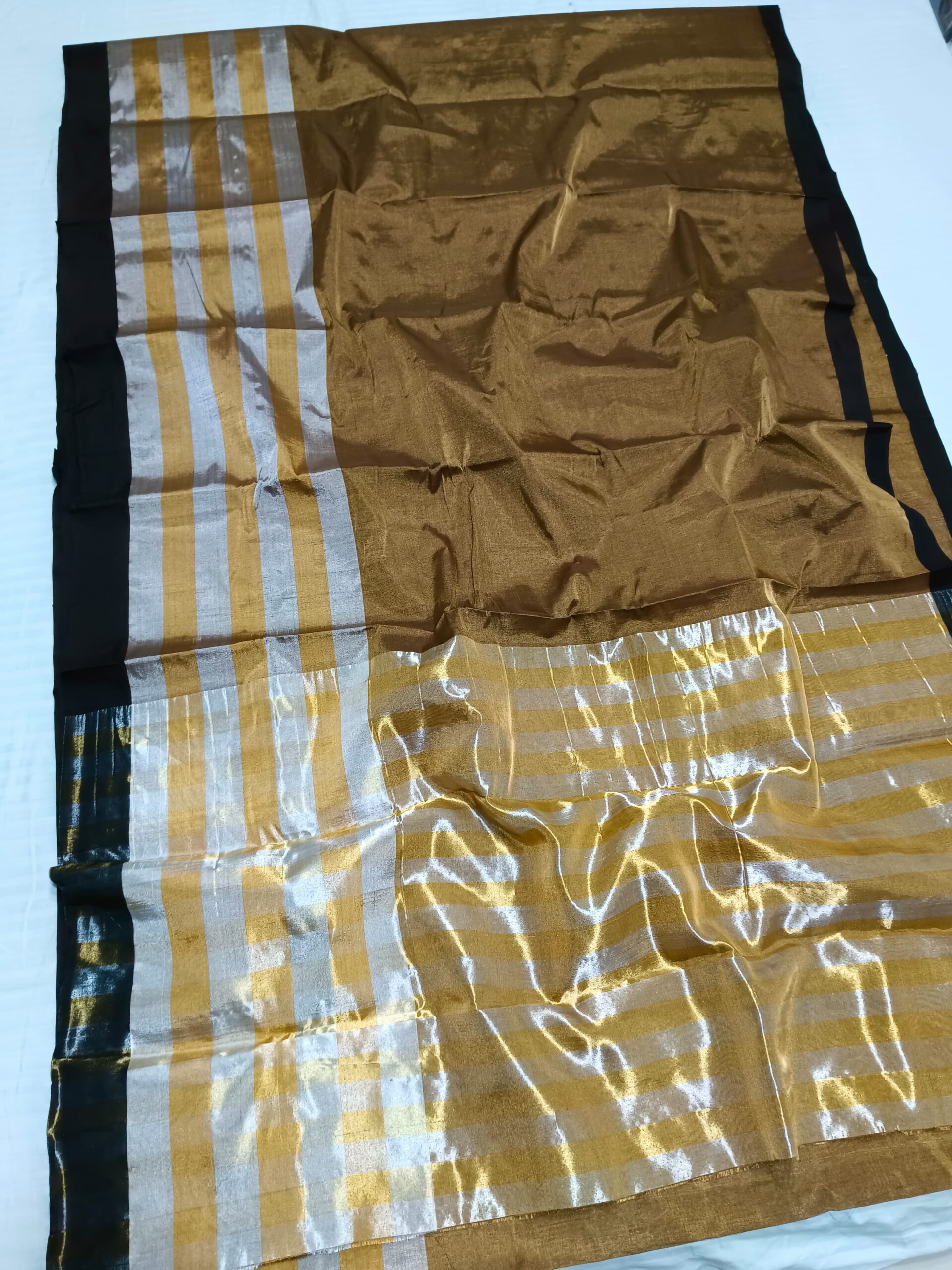 HomeChanderi Silk Sarees Copper Golden Stripe Chanderi Silk Saree