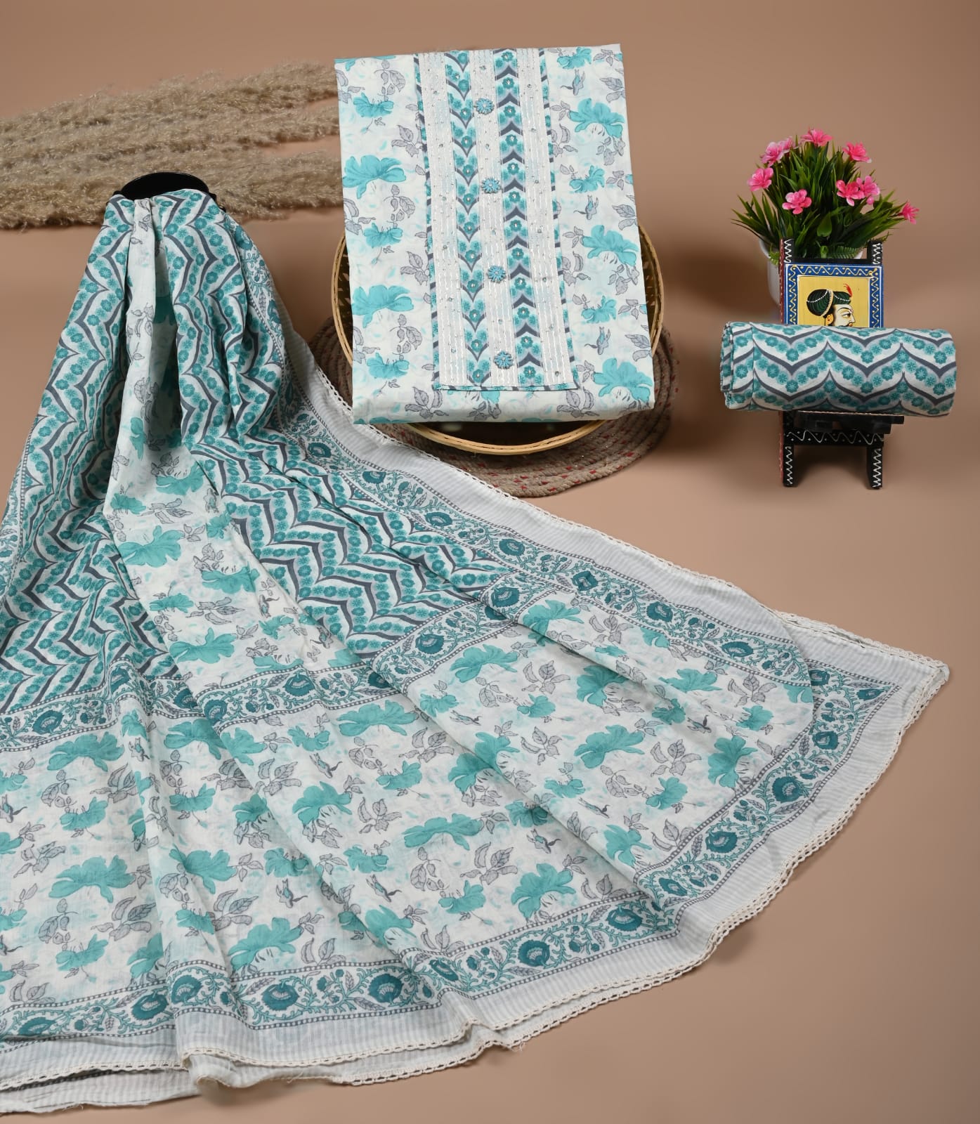 Bagru handblock suits with gota workcotton Tie work suit material with cotton dupatta