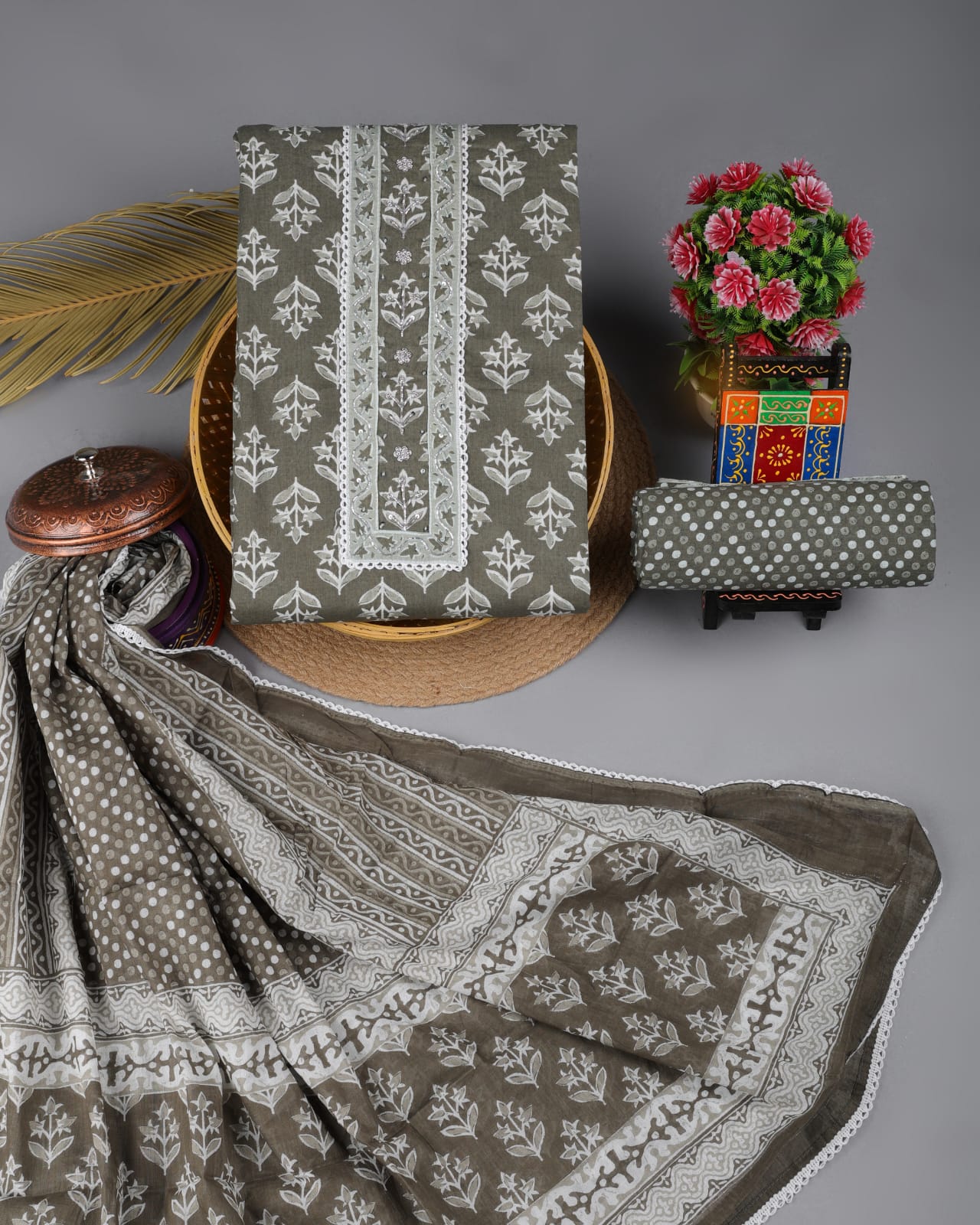 Jackyll Special handblock printed pure cotton suits with kota doriya dupatta.