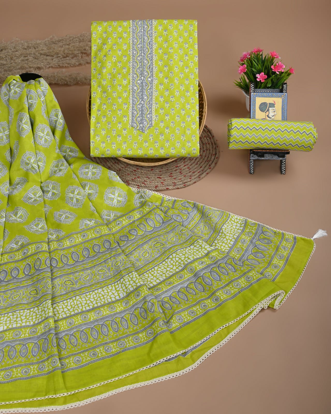 • Cotton Kurti with Cotton Plazo and Mulmul Dupatta