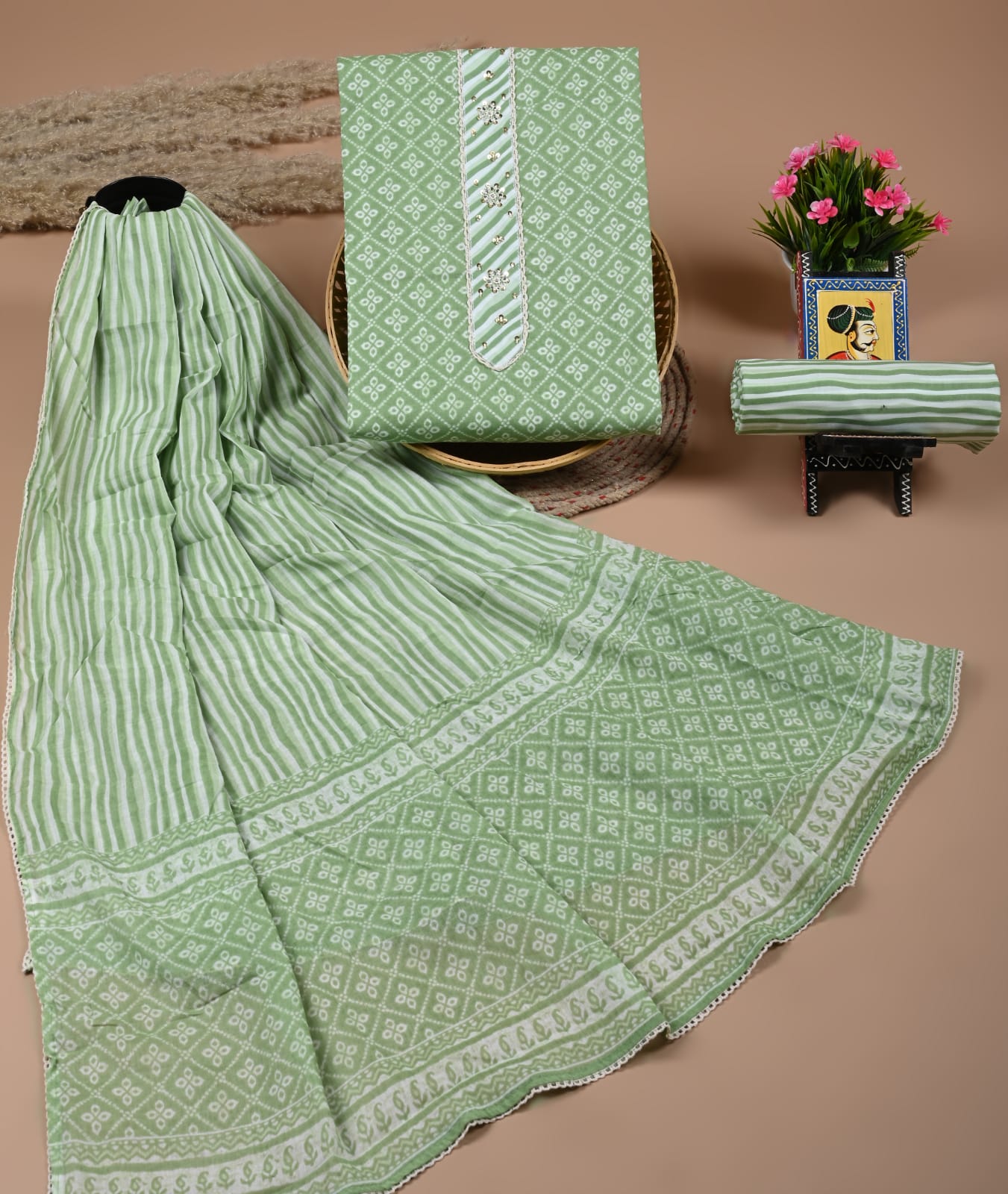 • Pure cotton suits with chiffon dupatta