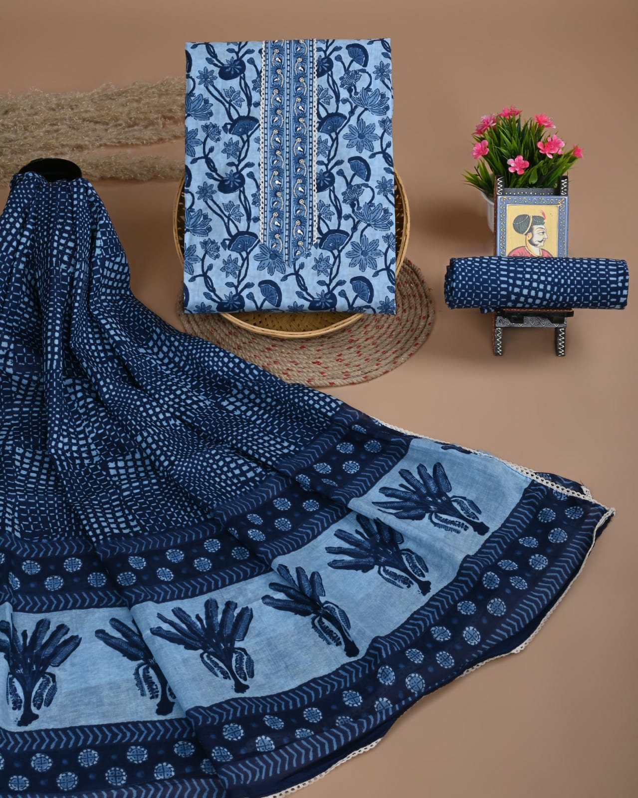 Cotton Tie work suit material with cotton dupatta and Gotta neck work