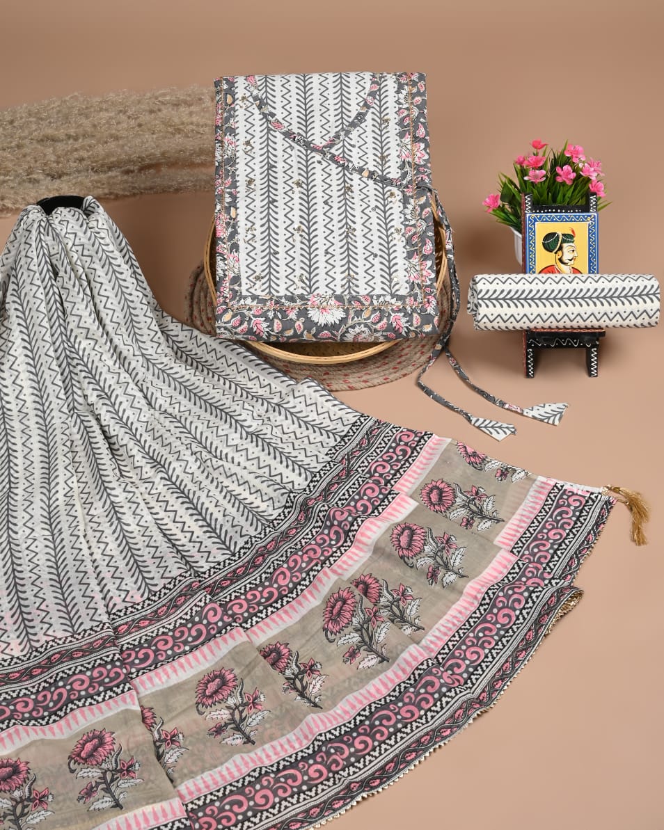 Jackyll Special handblock printed pure cotton suits with kota doriya dupatta.