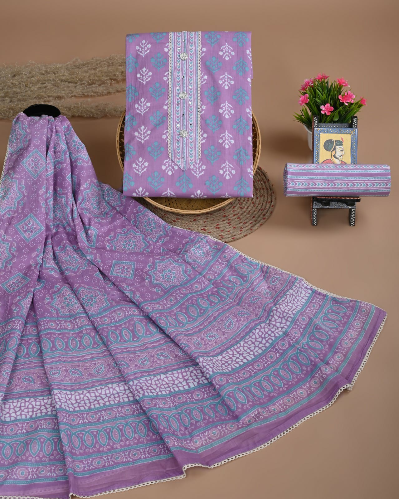 Jackyll Special handblock printed pure cotton suits with kota doriya dupatta.