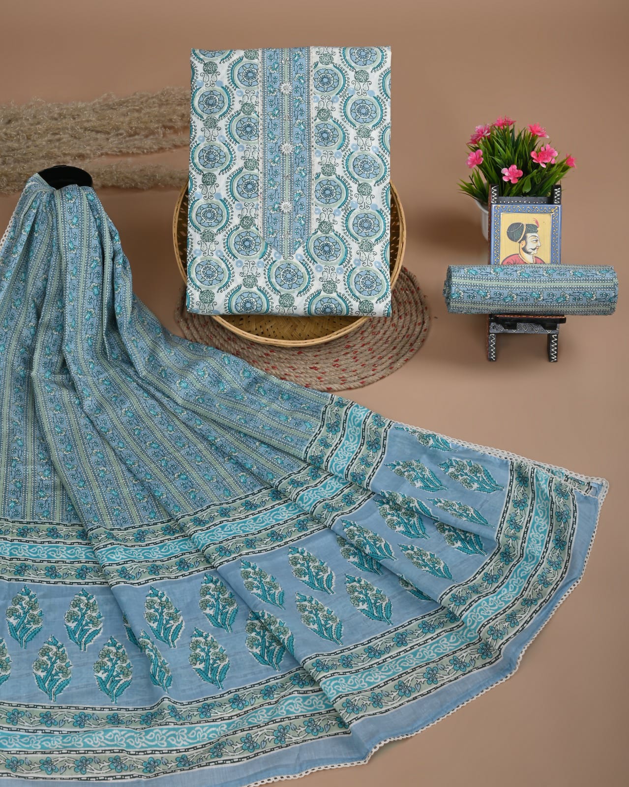 • Pure Cotton suits With Chanderi Dupatta