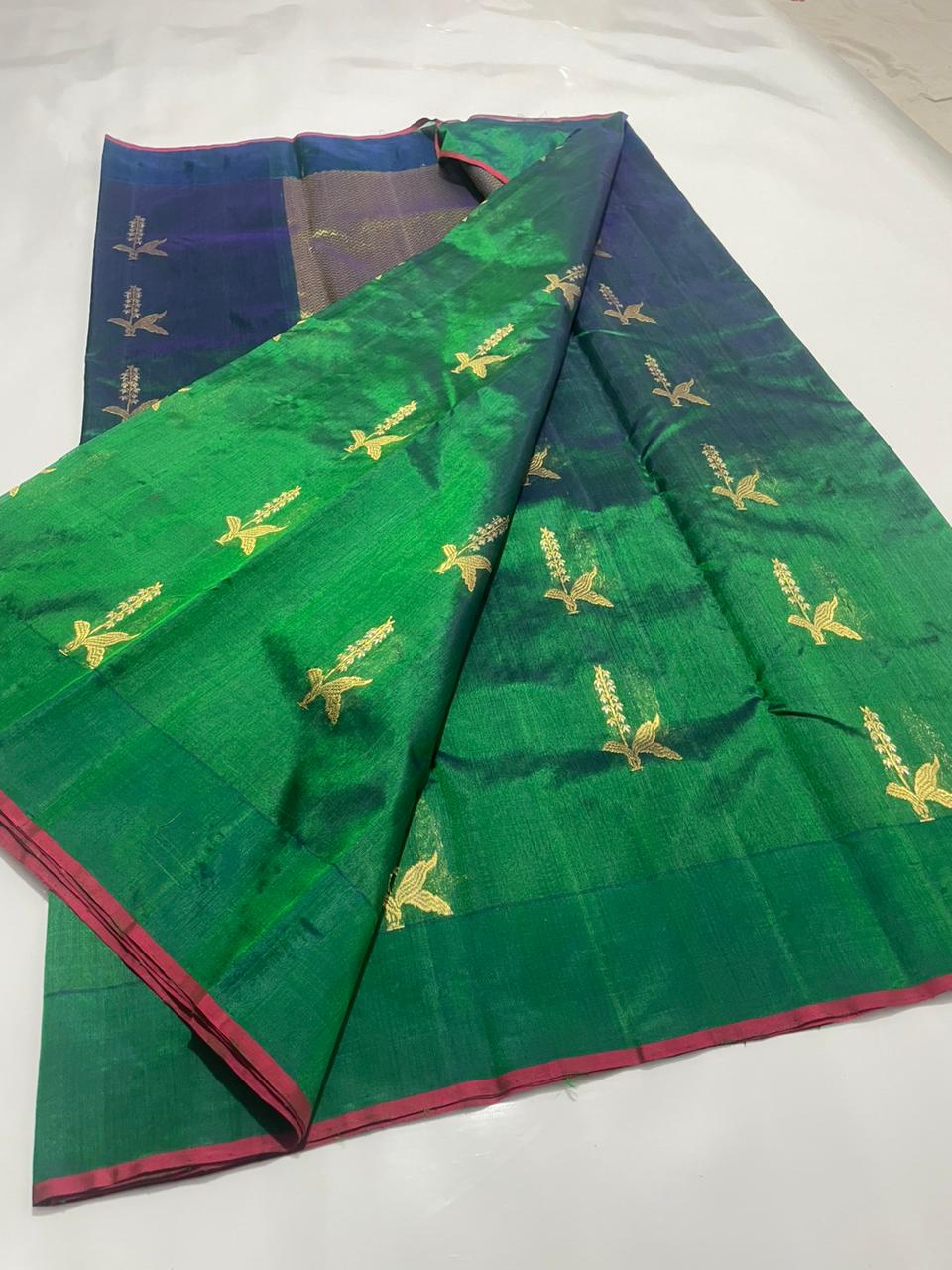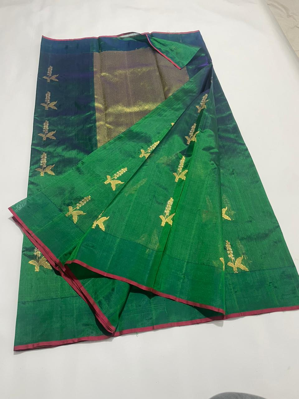Allover eknaliya Designer golden Zari handwoven minakari buta with dual color Resham