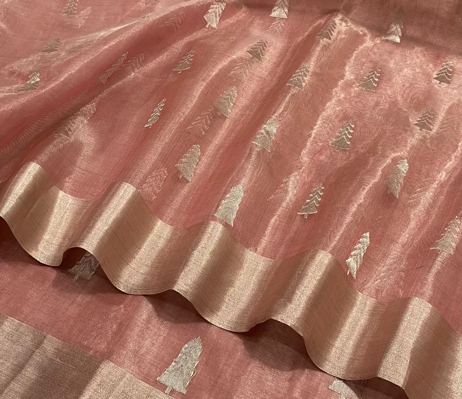 All-over beautiful silver Zari buta work With silver Zari solid border & silver Zari fancy stripe pallu
