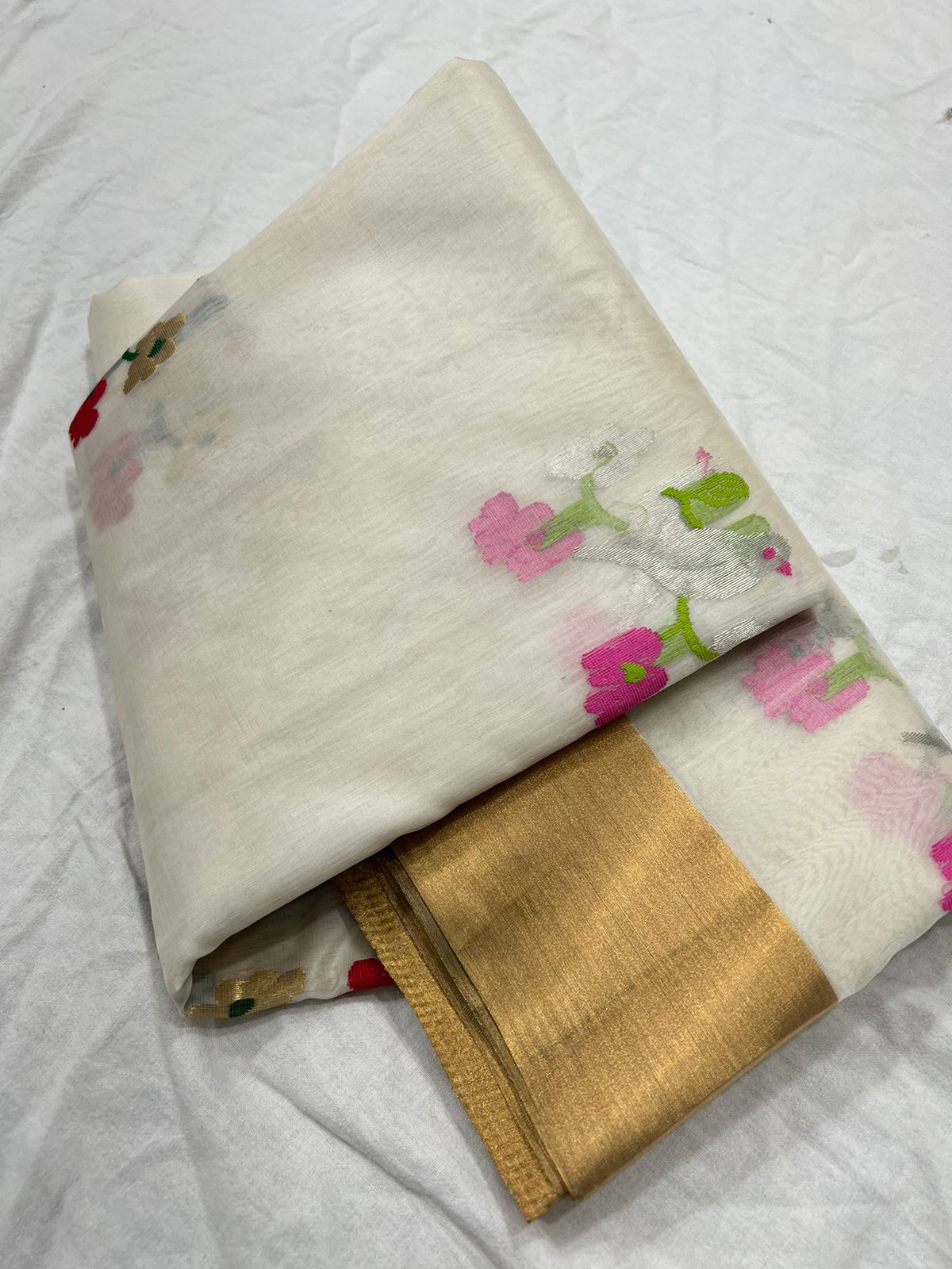 Exclusive fancy Chanderi  silk saree with silk mark label