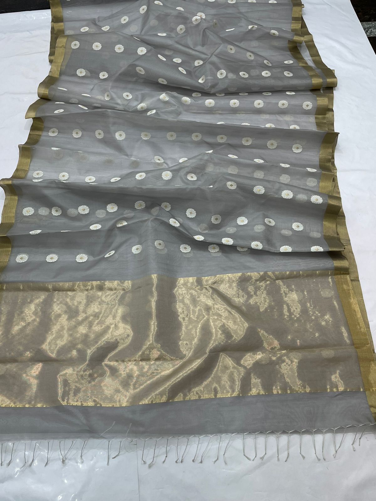 Exclusive handwoven fancy ghana minakari buti work chanderi silk saree