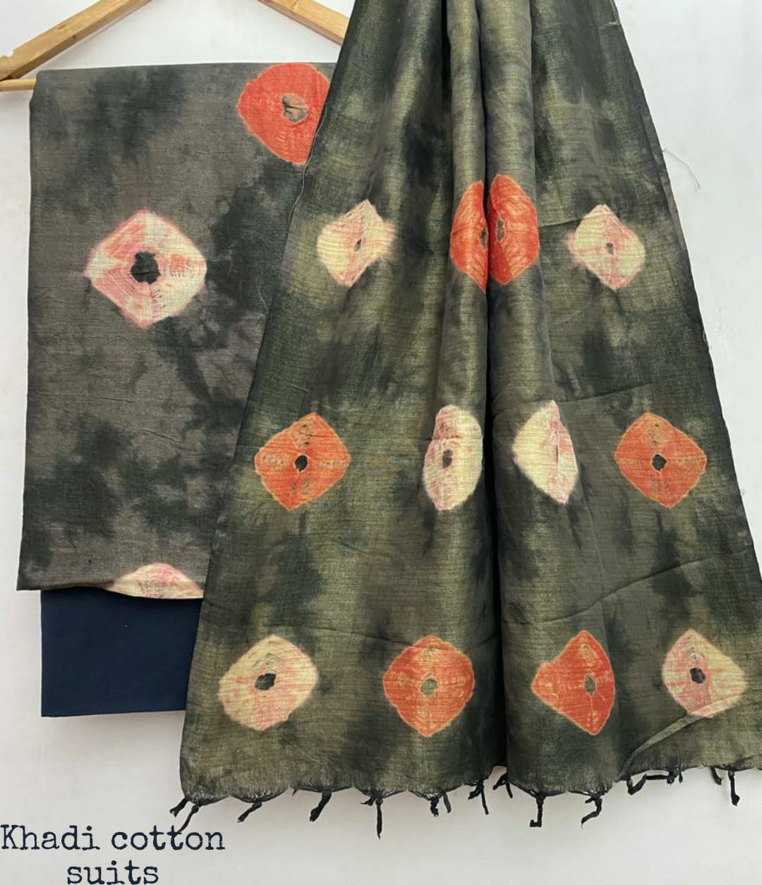 Exclusive new hand block printed khadi cotton dress materials with khadi cotton duptta